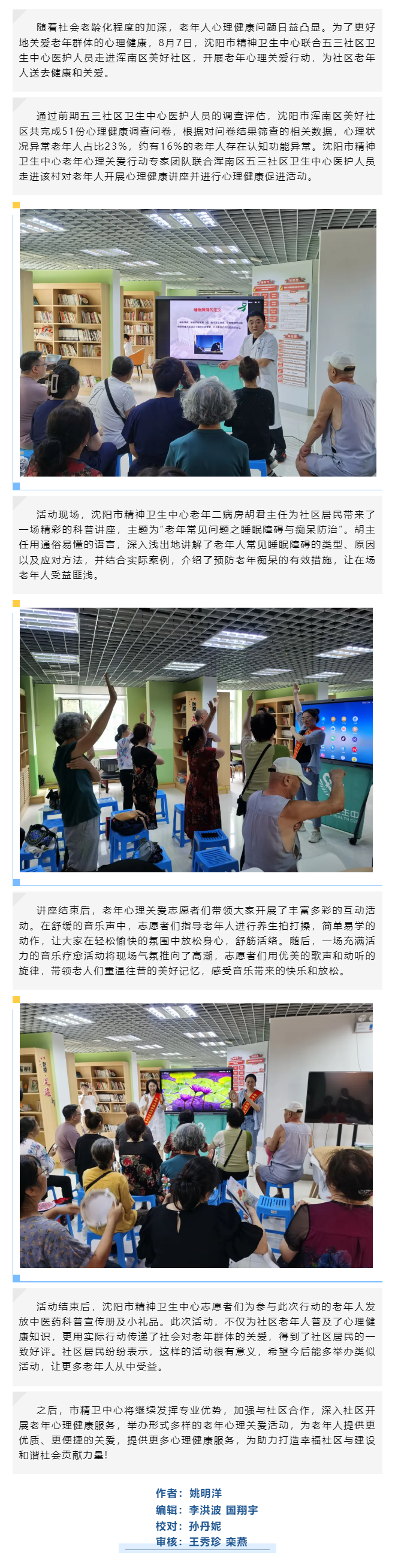 【醫(yī)院動态】心理(lǐ)關愛暖人心,美好社區(qū)樂夕陽——市精(jīng)衛中(zhōng)心走進沈陽市渾南區(qū)美好社區(qū),開展老年人心理(lǐ)關愛行動